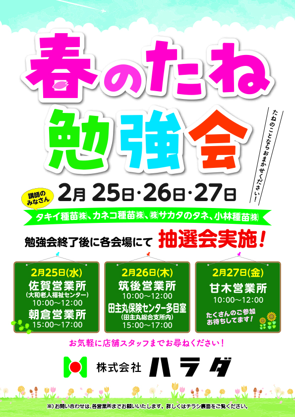 春たね勉強会を2月25日・26日・27日 5会場で開催いたします。